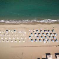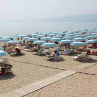 spiaggia riservata e attrezzata con 1 ombrellone e 2 lettini a camera, inclusi nella Tessera Club.