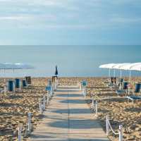 mpia e lunga spiaggia di sabbia fine con fondale leggermente digradante, premiato, per la quinta volta consecutiva con la